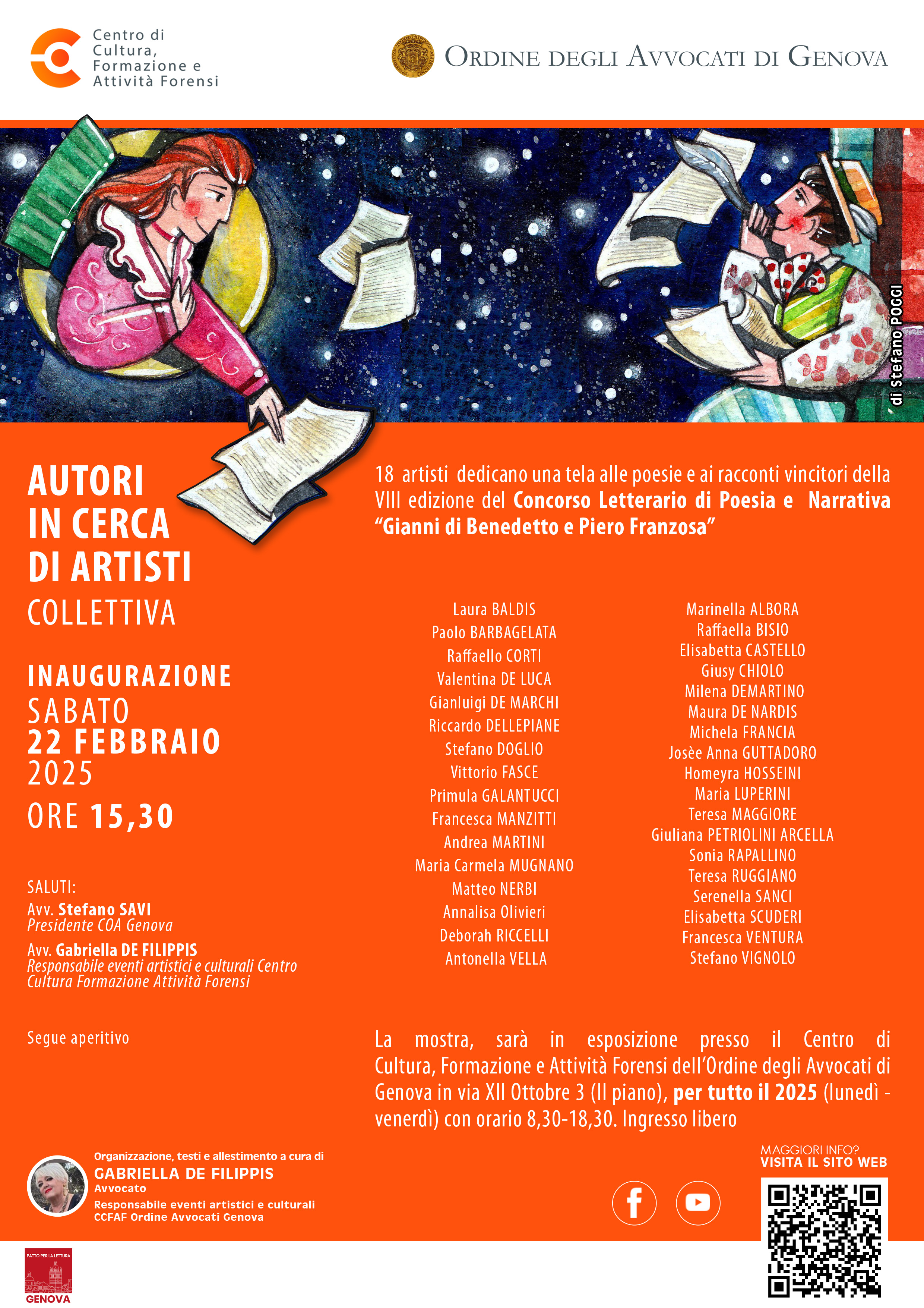 ARTISTI: Marinella ALBORA, Raffaella BISIO, Elisabetta CASTELLO, Giusy CHIOLO, Milena DEMARTINO, Maura DE NARDIS, Michela FRANCIA, Josèe Anna GUTTADORO, Homeyra HOSSEINI, Maria LUPERINI, Teresa MAGGIORE, Giuliana PETRIOLINI ARCELLA, Sonia RAPALLINO, Teresa RUGGIANO, Serenella SANCI, Elisabetta SCUDERI, Francesca VENTURA, Stefano VIGNOLO.