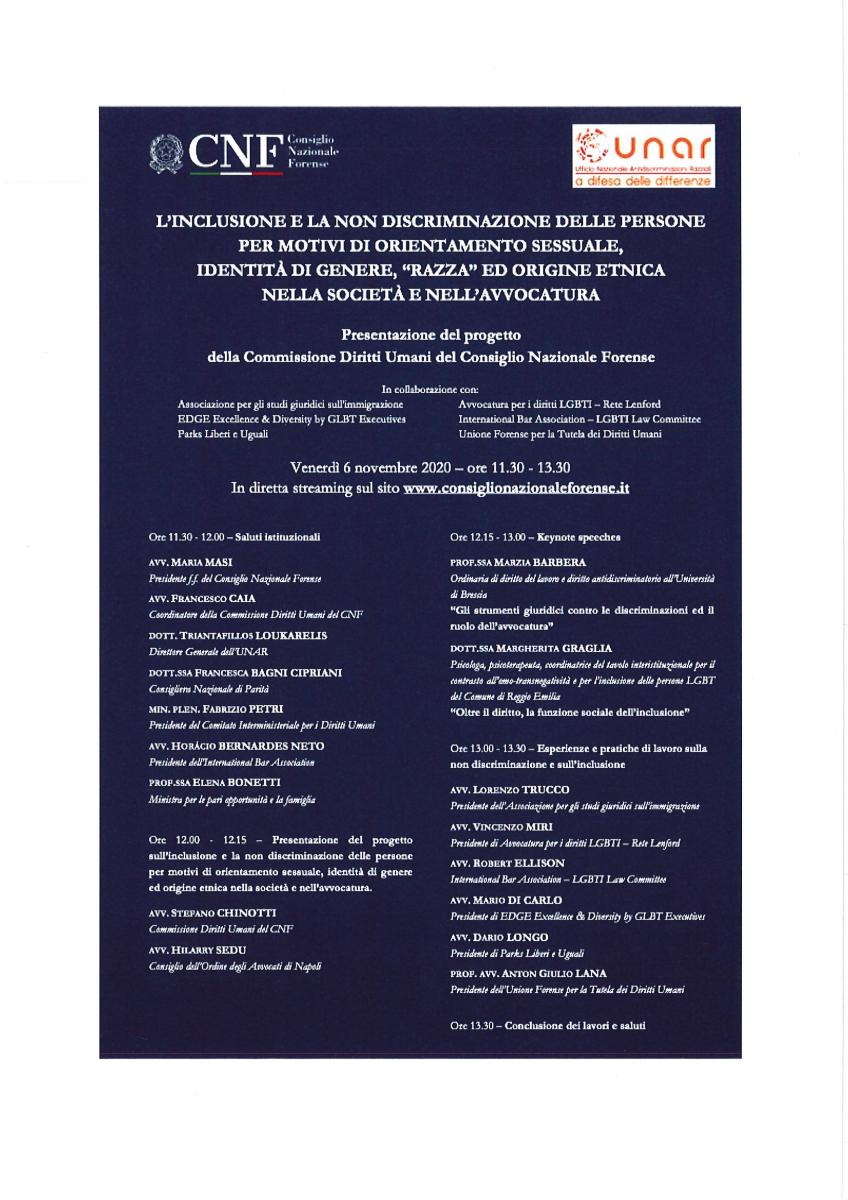 C.N.F. Evento in diretta streaming - inclusività delle persone a rischio di discriminazione per motivi di orientamento sessuale - 6/11/2020
