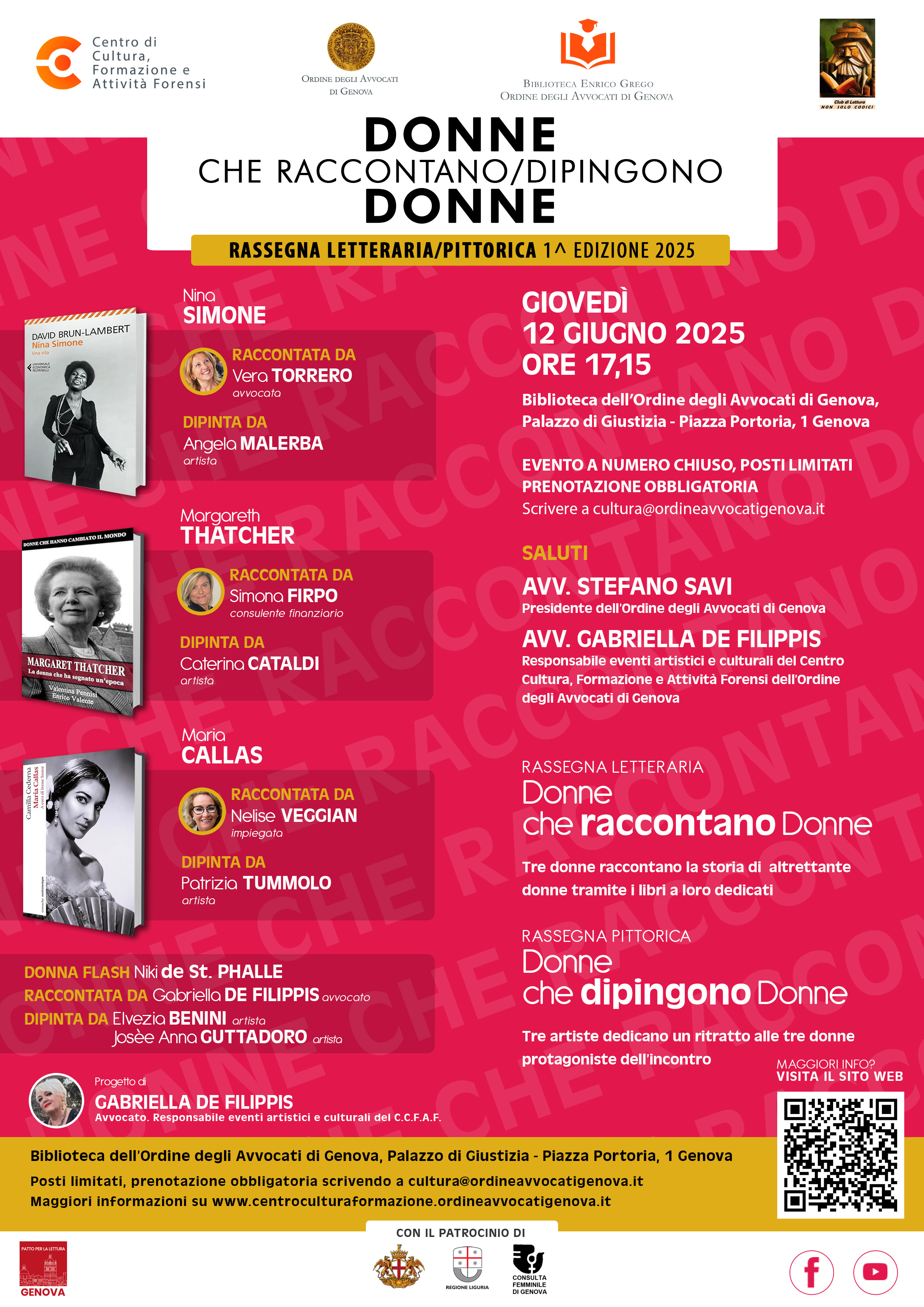Il progetto ha ottenuto il Patrocinio dal Comune di Genova, dalla Regione Liguria nonché dalla Consulta Femminile di Genova