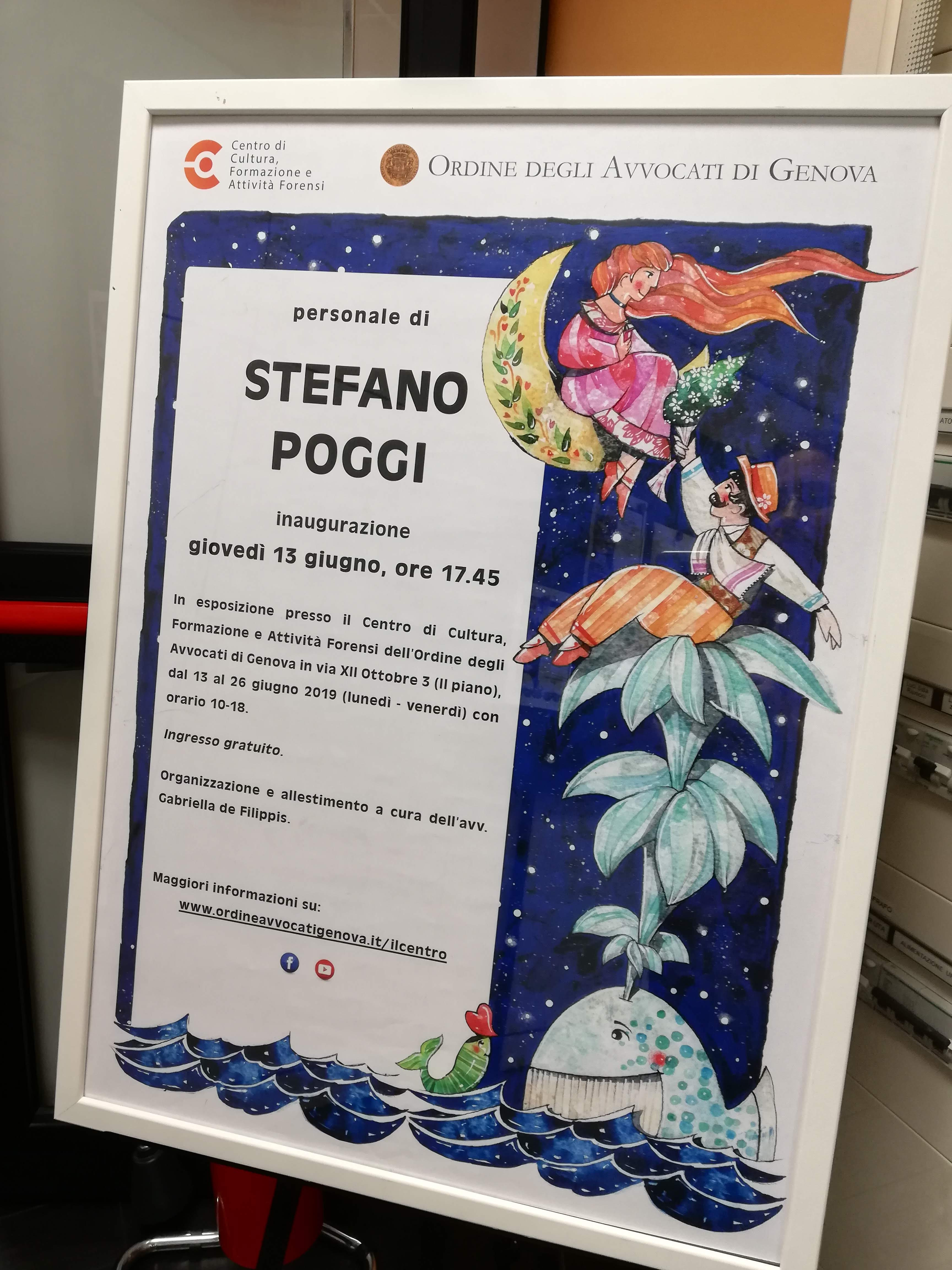 In esposizione presso il Centro di Cultura, Formazione e Attività Forensi dell’Ordine degli Avvocati di Genova in via XII Ottobre 3 (II piano), dal 13 al 26 giugno 2019 (lunedì - venerdì) con orario 10-18.