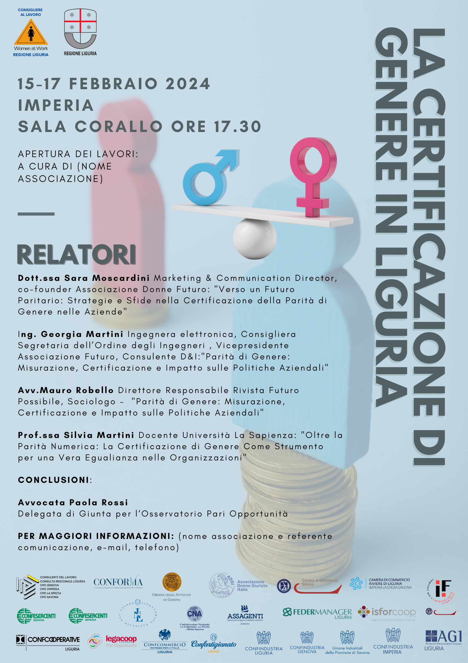 Evento "La certificazione di genere in Liguria" 15-17 febbraio 2024
