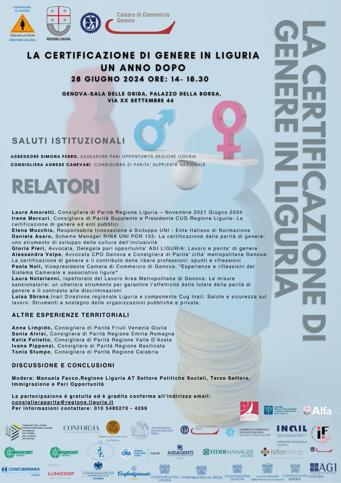 28 giugno 2024 - La certificazione di genere in Liguria: un anno dopo - Palazzo della Borsa
