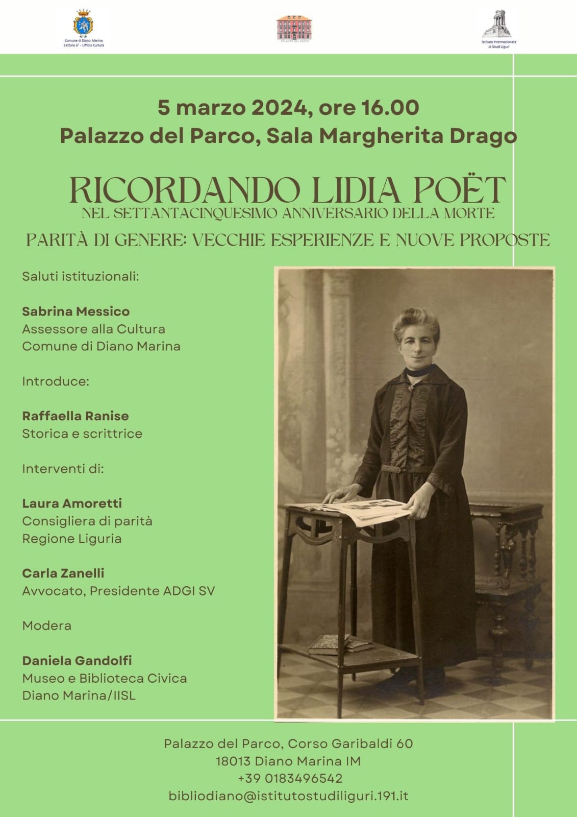 Comune Diano Marina - ricordando Lidia Poët - Parità di genere : vecchie esperienze e nuove proposte